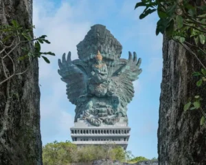 - GWK Culture Park – Garuda Wisnu Kencana Cultural Park (GWK) is a renowned cultural and tourism destination located in Ungasan, Badung, Bali. Spanning 60 hectares, the park is dedicated to the Hindu god Vishnu and his mount, the mythical bird Garuda. The centerpiece is the monumental Garuda Wisnu Kencana statue, which stands as Indonesia’s tallest statue at 122 meters tall, surpassing even the Statue of Liberty in height. The statue was completed in August 2018.